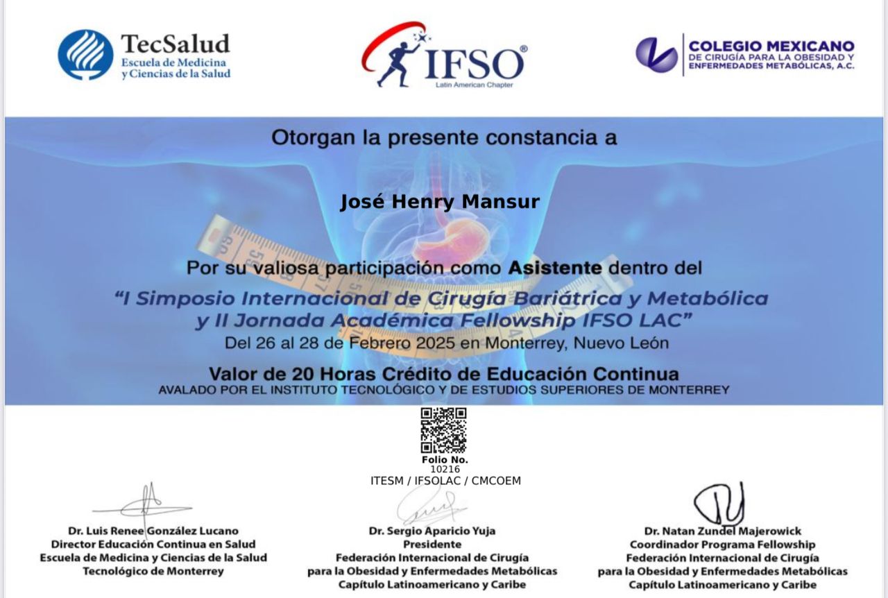 Después de buscar por mucho tiempo un Bariatra que me diera confianza tuve una cita con el Dr. Henry Mansur y lo elegí porque fue de el que tuve mejores recomendaciones.